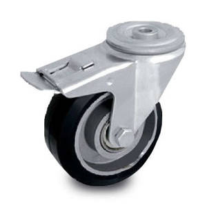 Zestaw kołowy skrętny z hamulcem KJM-ALGE 100K-HC z kołem gumowym piasta aluminium. Nośność 160 kg / 100mm/ kulkowe