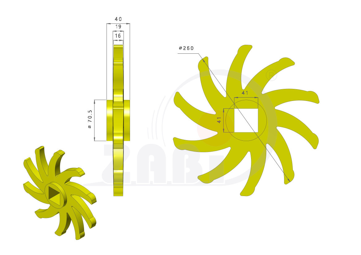 | inne: | 10 ramion twardość 90 Shore A kwadrat 40x40 |