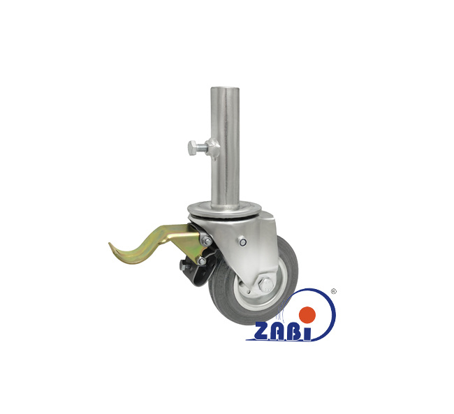 Model CAST-ZAB-ZR25SH to profesjonalne kółko jezdne przeznaczone do mobilnych rusztowań stosowanych wewnątrz i na zewnątrz budynków. Niebrudzące ogumienie umożliwia bezpieczną pracę w przestrzeniach z wymagającym podłożem, jak sale sportowe, hale produkcyjne czy magazyny. Hamulec zwiększa bezpieczeństwo pracy na wysokości, a skrętna konstrukcja wspomaga mobilność w ograniczonych przestrzeniach.