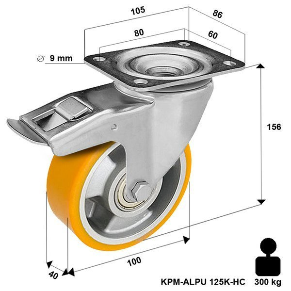Kółko transportowe przemysłowe skrętne obrotowe z hamulcem CASTKPM-ALPU 80K-HC - 200kg
