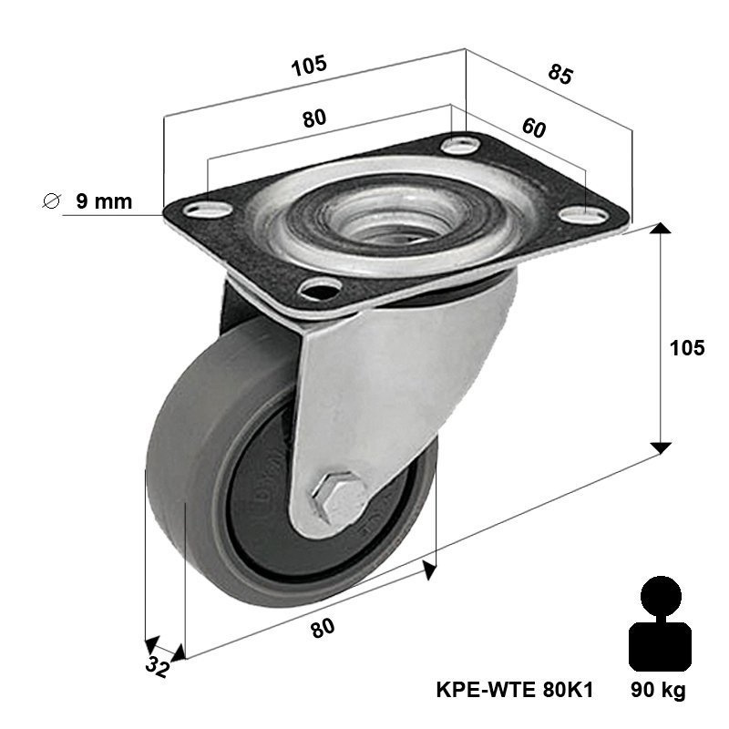 Typ produktu: | Zestawy kołowe z kołem z elastycznej szarej gumy polipropylenowa piasta |